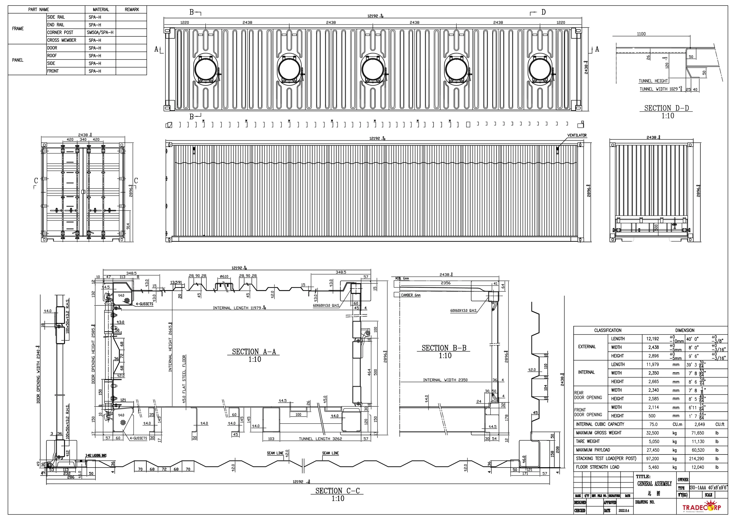 Dimensions L 40’ x W 8’ x H 9 ‘ 6’ L 12 m x W 2.4 m x H 2.7 m